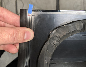RemarqueConservez le cordon de périmètre plat autant que possible, ce qui crée une surface plane relevée sur 3 côtés pour l’installation. Enlevez toute surface irrégulière rugueuse et tout le cordon d’uréthane appliqué à la main.