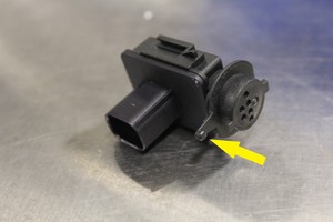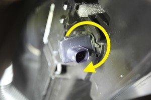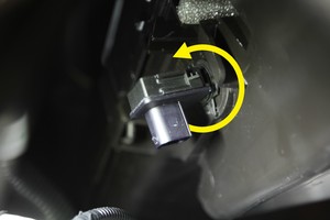 - Soulevez la languette de verrouillage et faites pivoter le capteur de qualité de l’air dans le sens antihoraire, puis retirez le capteur du véhicule.