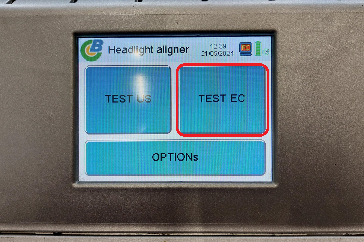 - Quelle que soit la région, sélectionnez TEST EC sur l'outil d'alignement des phares.