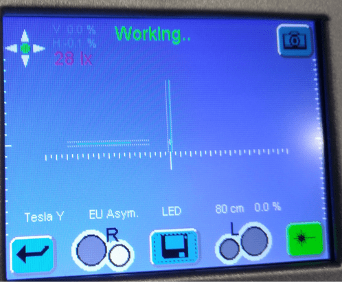 - Sélectionnez l'icône laser et ajustez la position horizontale et verticale du testeur au point focal de la lumière gauche.