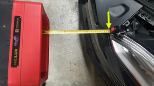 - Déplacez l'outil testeur de phare vers le phare droit, positionnez l'outil à ~30 cm (~12 po) de l'avant de la lentille du phare droit.