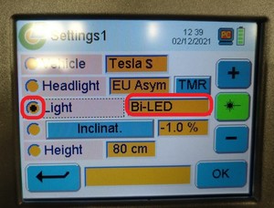 - Sélectionnez Light (Éclairage), puis utilisez le bouton + ou - pour régler le type de phare à Bi-LED.