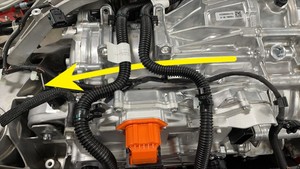 - Release the clips (x3) that attach the rear subframe harness to the RH motor.