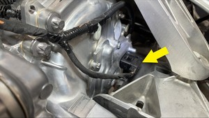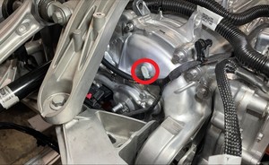 - Release the connector lock, press the tab, and then gently pull to disconnect the rear subrame harness from the RH oil pump connector.
