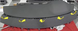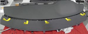 Retirez les vis (x9) qui fixent la grille du haut-parleur du tableau de bord au sous-ensemble de tableau de bord.
