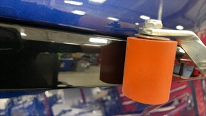 Remarquex5 clips.RemarquePeel away the tape when ready to install the applique.RemarqueAlign the applique using pin. Start by fastening the center clips, and then work your way out.RemarqueUse the seam roller to seat the adhesive areas.
