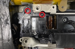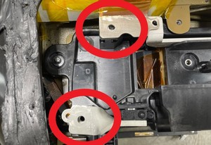 - Posez le contacteur négatif sur la batterie HT, puis sur les goujons de fixation (x2) et les tiges de guidage (x2).