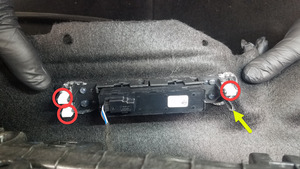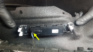 - Débranchez le connecteur électrique de la commande de rabattage du siège de coffre de la deuxième rangée.