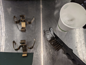 - Utilisez une brosse à main et de l’eau savonneuse pour nettoyer les ressorts anti-cliquetis.