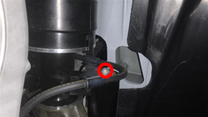 - Retirez l’attache qui fixe le tuyau de frein avant gauche à le support de montage et retirez le tuyau de frein du véhicule.