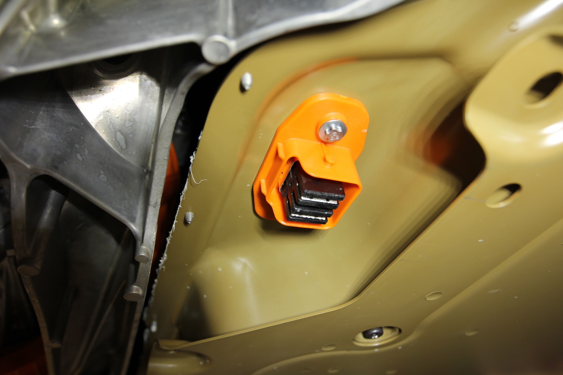 RemarquePlace fender cover over multi-system beam. Connect first responder loop then secure 12v maintainer to positive jump post and chassis ground. Vehicle will power on with 0% Low Voltage message at UI.
