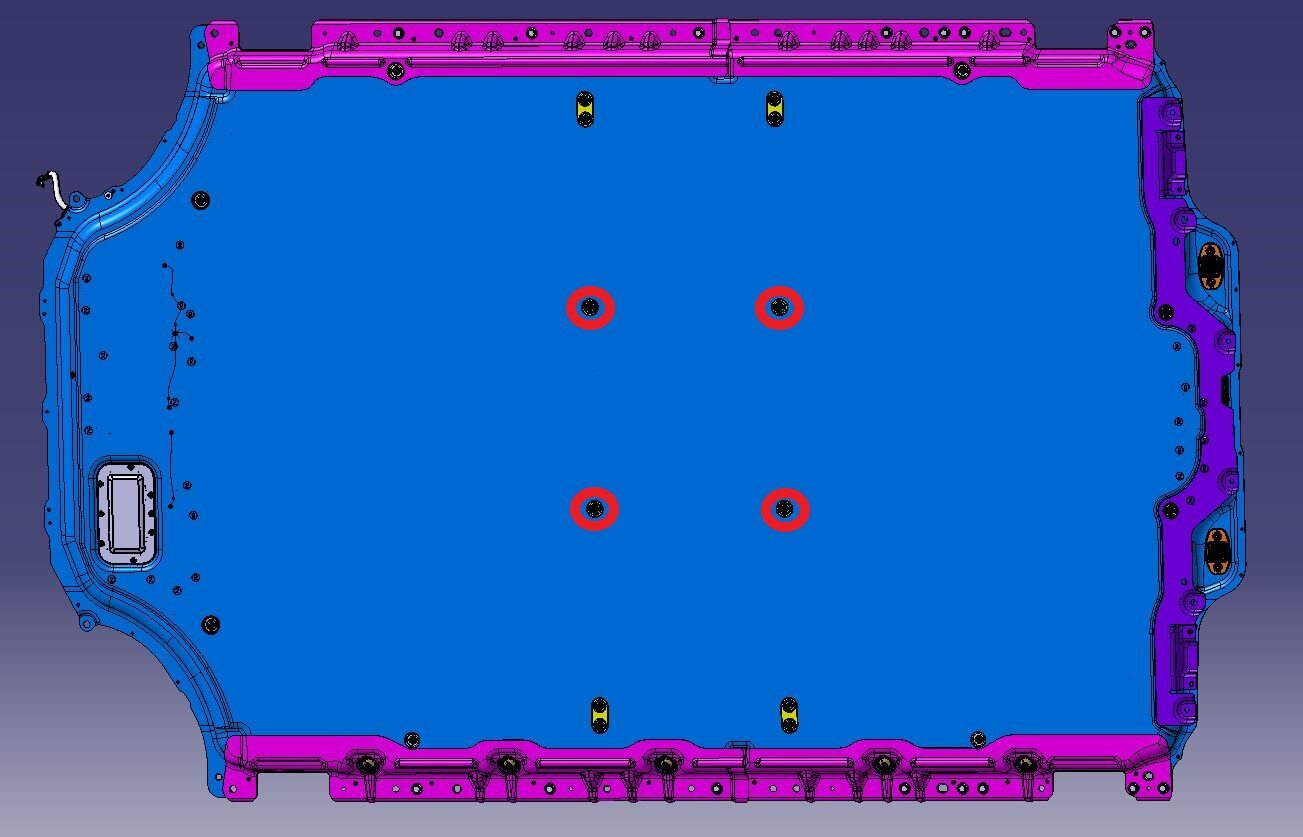 use a power tool to remove the center bolts (x4) securing the HV battery.