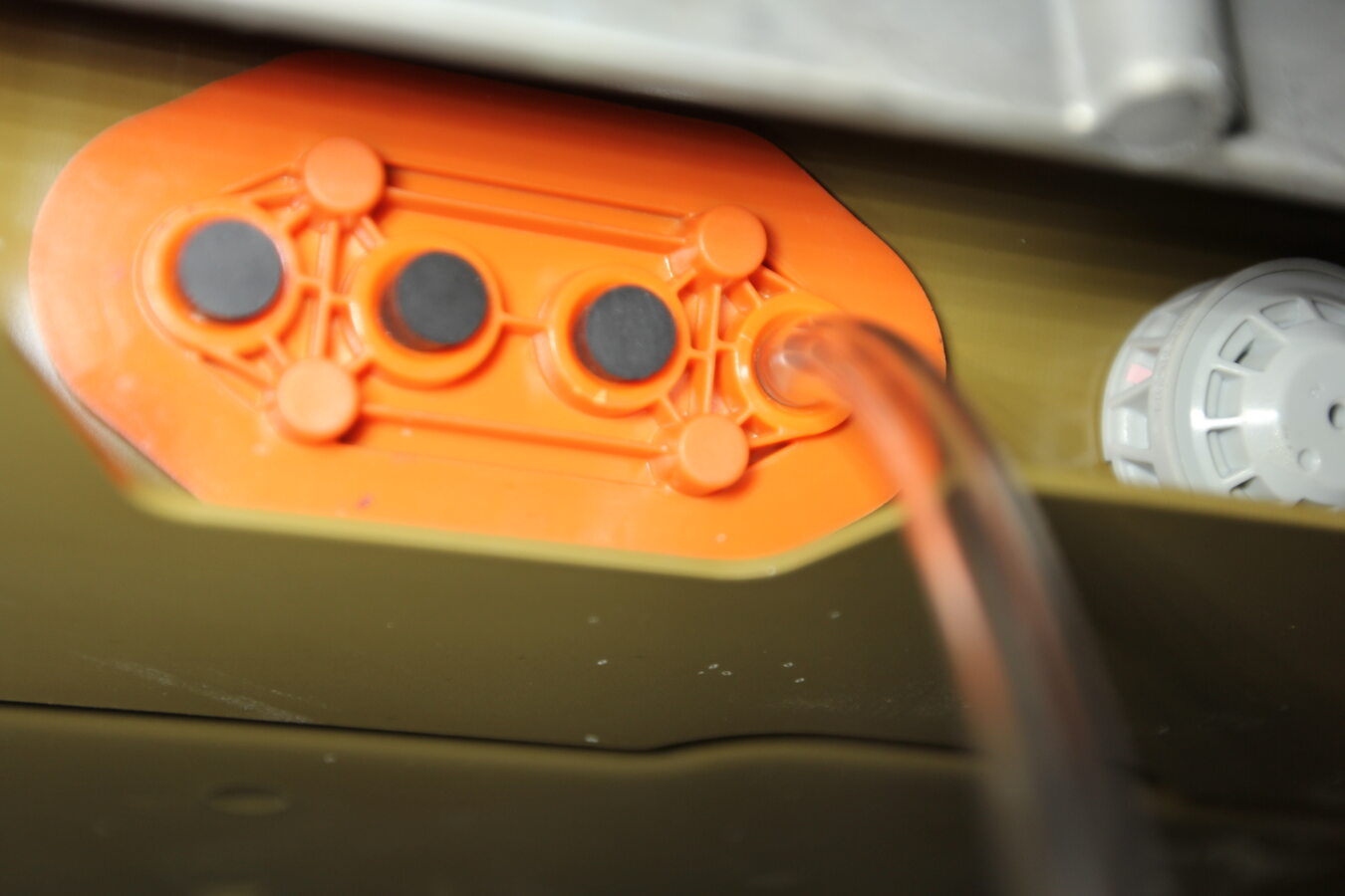 - Remove the vacuum refill hose from the refill cap on the coolant bottle.