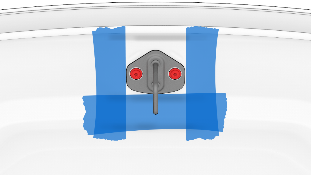 - Utilisez du ruban adhésif de carrossier pour marquer la position de la gâche du capot sur l’ensemble de capot.