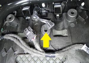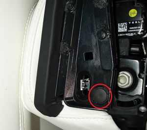 - Retirez le panneau arrière du siège de gauche de deuxième rangée. Voir Panneau arrière - siège de 2e rangée - gauche (retirez et remplacez).