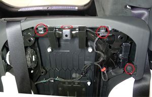 - Posez les attaches (x4) et les fixations qui fixent le coussin du dossier du siège de gauche de la deuxième rangée à l’ensemble du siège.