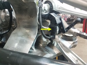 - Remove the bolt that attaches the LH ride height sensor arm to the LH upper fore link.