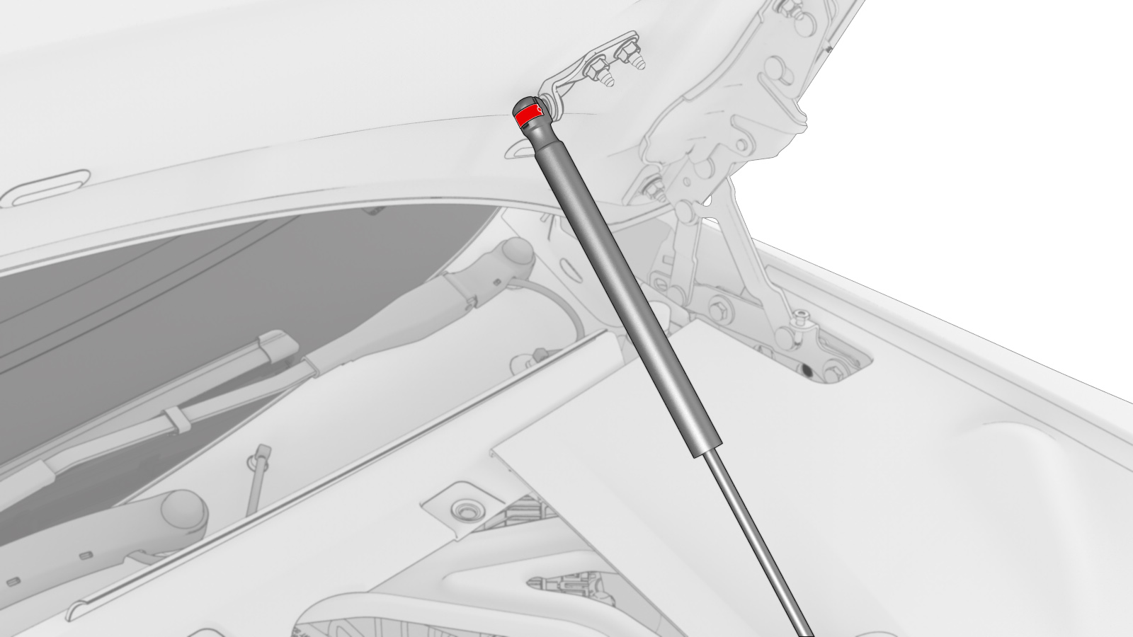 - Dégagez l’attache qui fixe le vérin à gaz du capot au capot.
