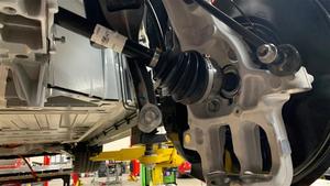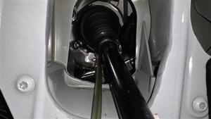 Installez le demi-arbre avant gauche dans l'unité d'entraînement avant, puis appuyez fermement sur le demi-arbre dans l'unité d'entraînement de sorte que le demi-arbre soit complètement en place.