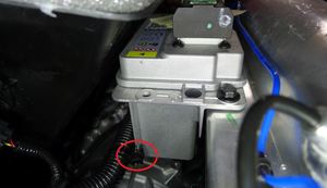 - Retirez l’attache qui fixe le tuyau de liquide de refroidissement à la batterie basse tension.