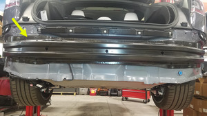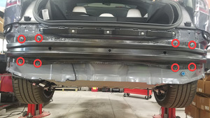 후면 범퍼 빔을 차체에 고정하는 너트(8개)를 탈거한 다음 차량에서 범퍼 빔을 탈거합니다.