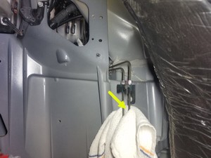 - ABS-LH 실 파이프의 파이프 어셈블리 정션 블록 아래에서 작업용 걸레를 치웁니다.