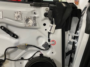 - 도어 미러 전기 커넥터를 연결한 다음 하네스 클립을 도어에 고정합니다.