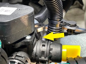 - 3방향 밸브에 냉각수 호스를 고정하는 클립을 조입니다.