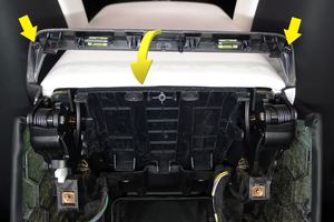 참고기준점을 분리하고 브라이트를 위로 회전하여 센터 콘솔에서 빼냅니다.참고T10(4개): 토크 0.7Nm. T20(2개): 토크 1Nm.