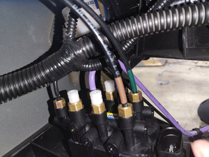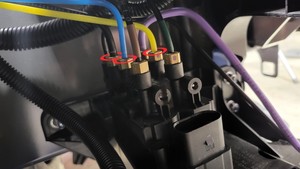 - 에어 서스펜션 밸브 블록 전기 커넥터를 연결 해제합니다.