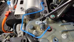 - 에어 컴프레서 전기 커넥터(2개)를 연결 해제합니다.