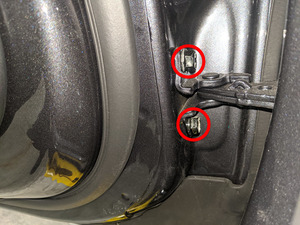 - LH 하단 전면 도어 힌지를 차량에 배치합니다.