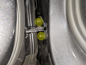 IPA 천을 사용하여 차체 측면 하단 힌지 볼트를 닦아냅니다.