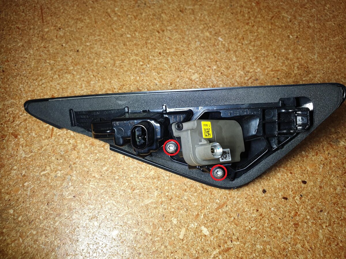 Release the push clip that attaches the LH front side repeater to the LH front fender assembly.