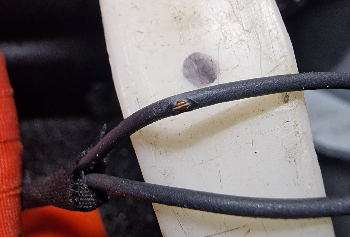 - A/C 컴프레서 HV 하네스의 HVIL 하네스 분기가 쇼크 타워 브레이스에서 떨어져 올바르게 경로 배치되었고, 그 위에 놓이지 않았는지 확인하십시오.