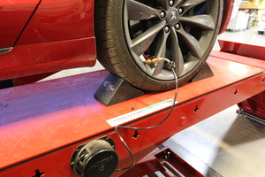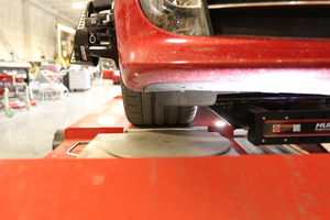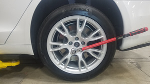 차량 지상고를 표준으로 설정한 다음 차량을 얼라인먼트 랙으로 이동하고 주차로 변속합니다.