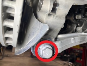 LH 후면 하단 전방 링크를 너클에 고정하는 볼트를 탈거합니다.