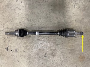 장착을 위해 하프샤프트를 차량에 놓습니다.