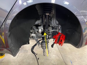차량에서 LH 후면 너클 어셈블리를 탈거합니다.