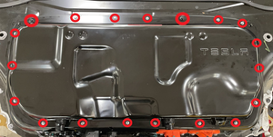 참고볼트 6개, 8mm, 6Nm, 8mm 패스너만 탈거합니다. T30 패스너는 탈거하지 마십시오. 배터리 버전에 따라 마이카 테이프가 후면 볼트를 덮고 있을 수 있습니다. 필요에 따라 테이프를 떼어내 한쪽에 보관해 둡니다.