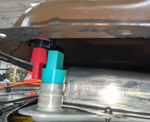 PCS 배출 호스를 HV 배터리에 고정하는 클립을 장착합니다.