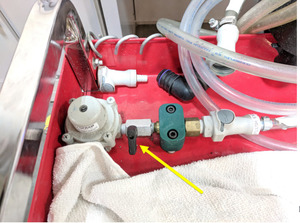 - 냉각수가 더 이상 배출되지 않으면 압력 조절기의 밸브를 닫습니다.