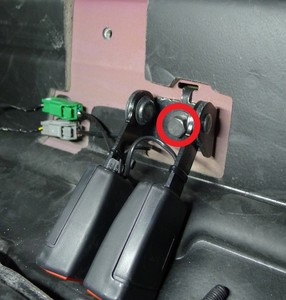 중앙 안전벨트 버클을 차체에 고정하는 새 볼트를 장착합니다.