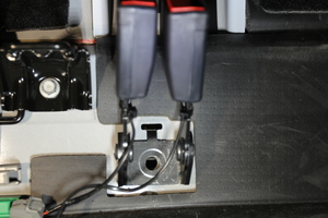 - 중앙 안전벨트 버클용 전기 커넥터(2개)를 분리합니다.