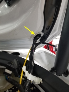 - 리프트게이트 하네스를 리프트게이트 및 차체에 고정하는 그로밋(2개)을 탈거한 다음 차량에서 하네스를 탈거합니다.