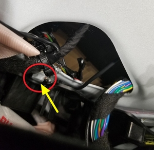 접지를 리프트게이트에 배치하고 접지를 리프트게이트에 연결하는 볼트를 장착한 다음 하네스를 리프트게이트에 부착하는 클립(2개)을 고정합니다.