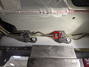 - LH 후면 브레이크 라인을 차체에 고정하는 클립(7개)을 탈거하고 차량에서 브레이크 라인을 탈거합니다.