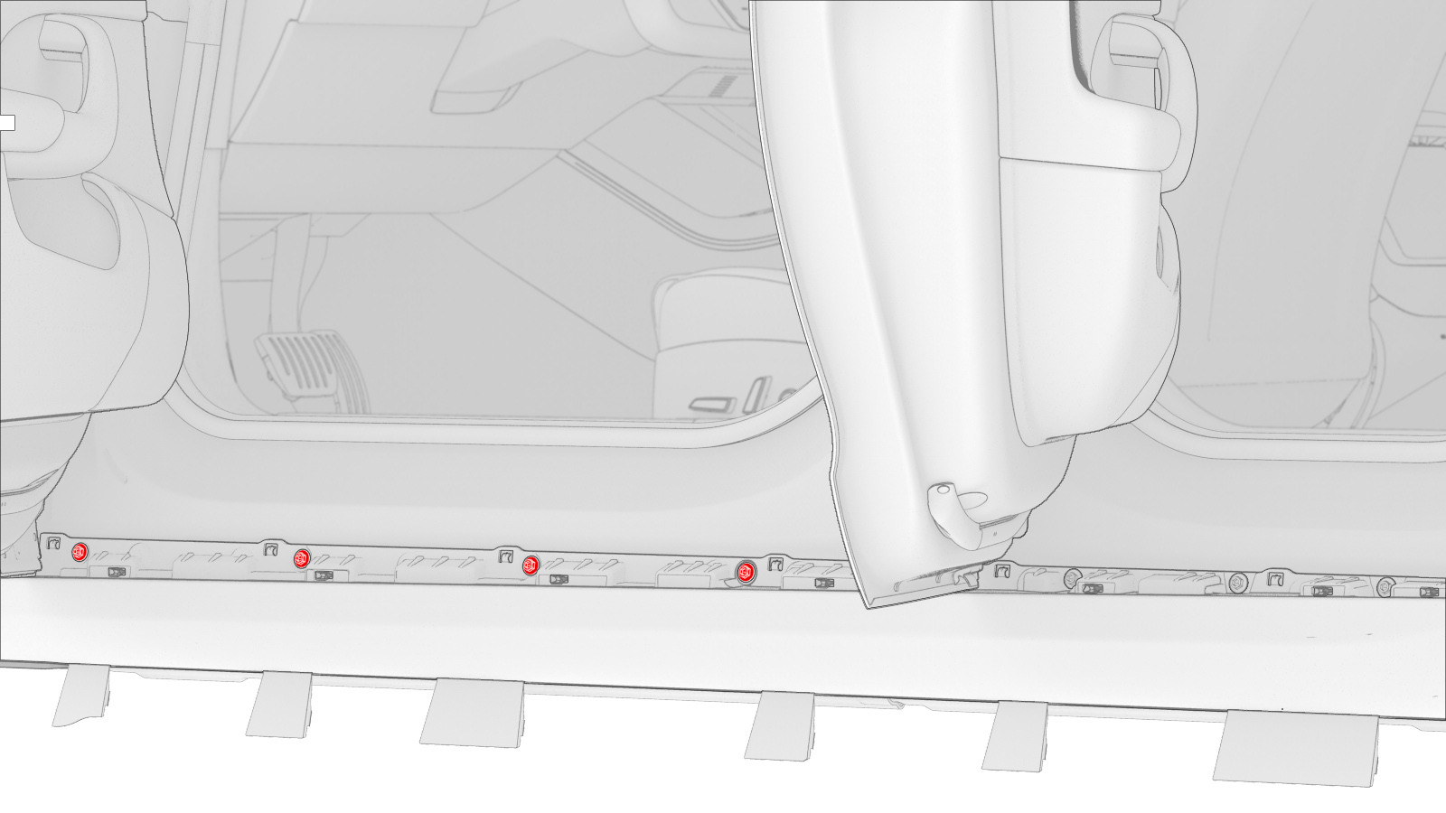 - LH 로커 패널 몰딩의 하단 가장자리에 커버(3개)를 고정합니다.