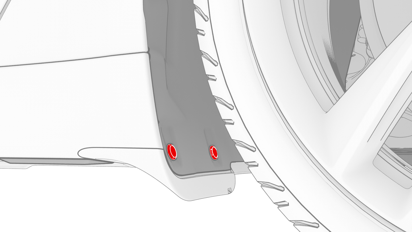 LH 후면 휠 페어링을 차체에 고정하는 볼트(2개)를 장착합니다.