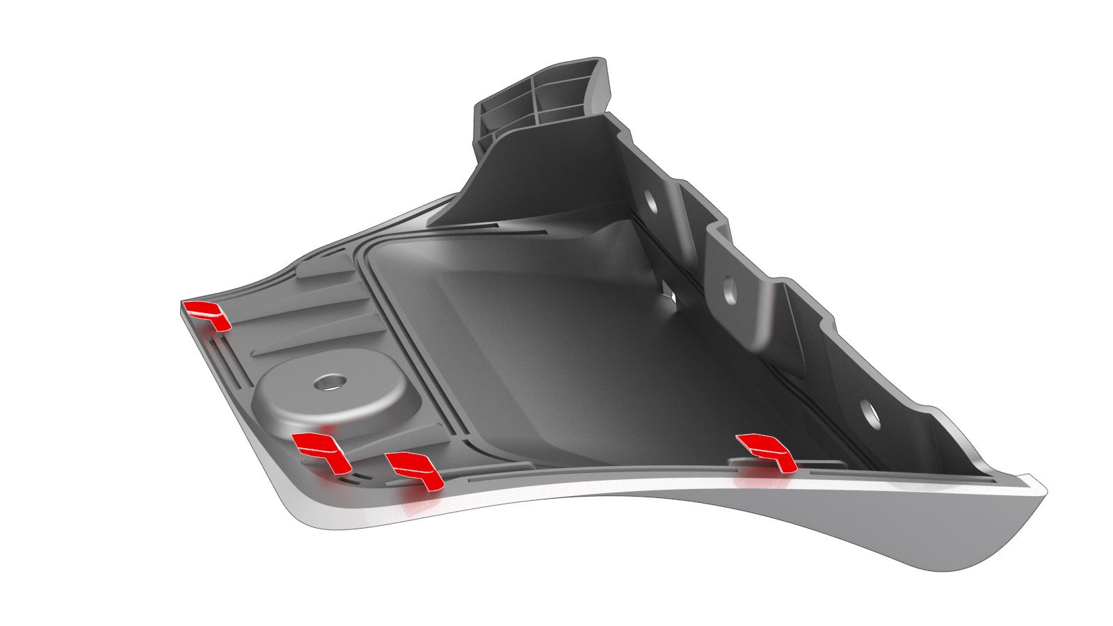 - LH 후면 휠 페어링을 차체에 고정하는 탭(5개)을 고정합니다.